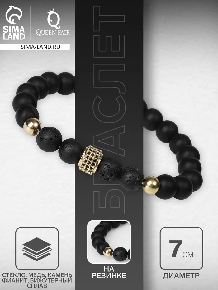 Браслет мужской «Бастион», бусины, d=7 см, чёрный — Характеристики