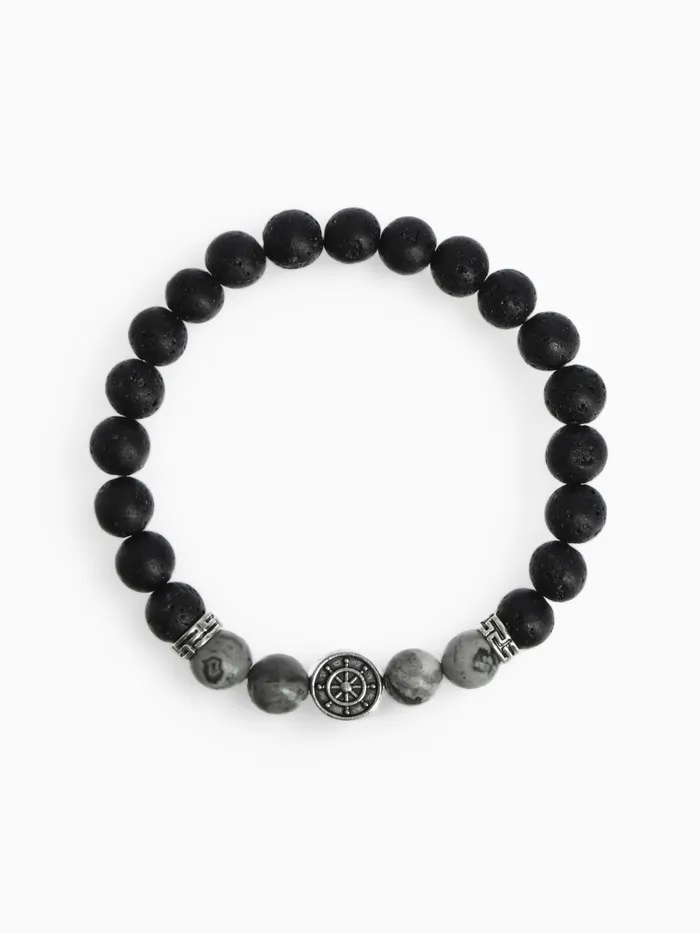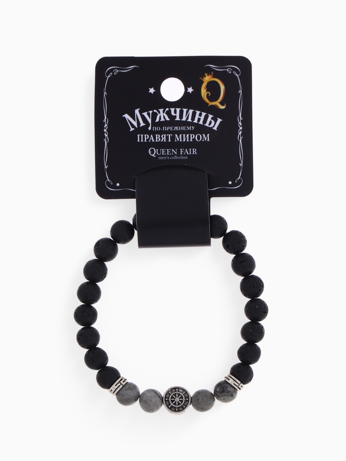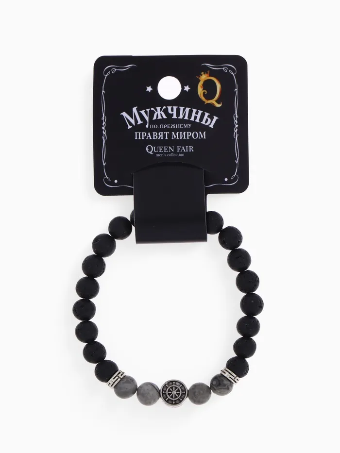 Браслет мужской «Бастион» штурвал, цвет чёрно-серый с серебром, d=7 см — Характеристики