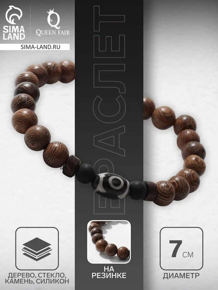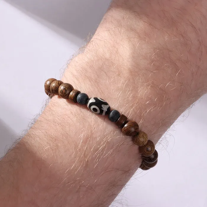 Браслет мужской «Бусина дзи» дерево, цвет коричневый — Характеристики