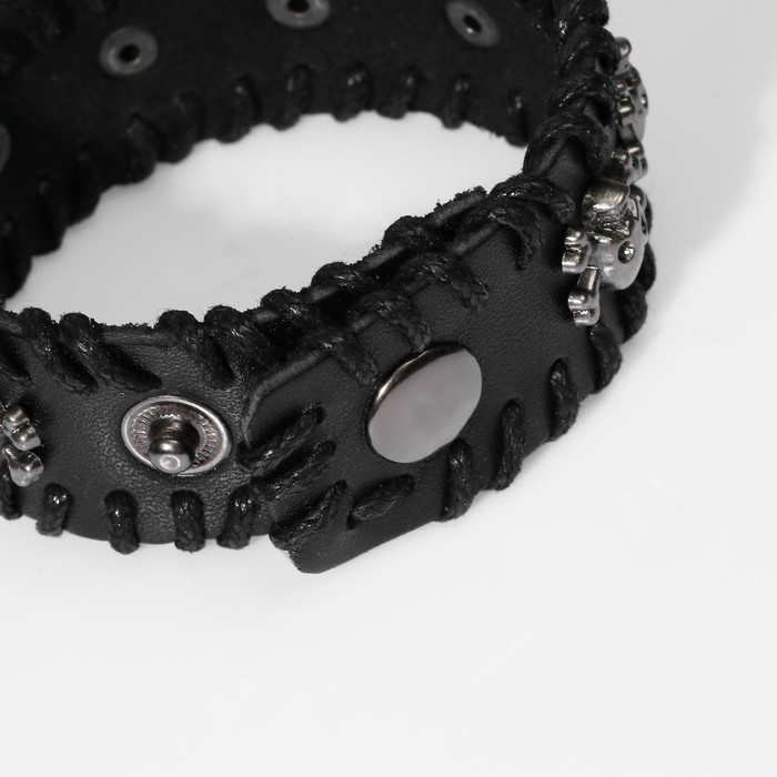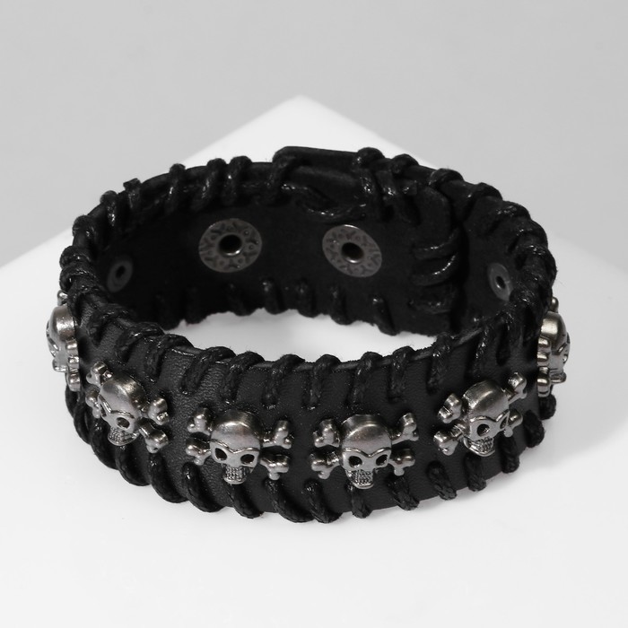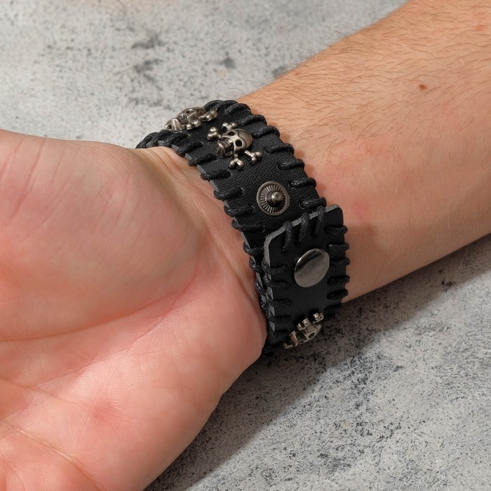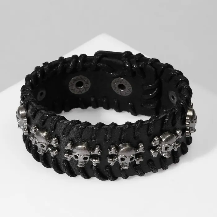 - Выразительный дизайн: изображение черепа с костями придает браслету дерзкий и уникальный вид, идеально подходящий для любителей рок-стиля и брутальных образов.