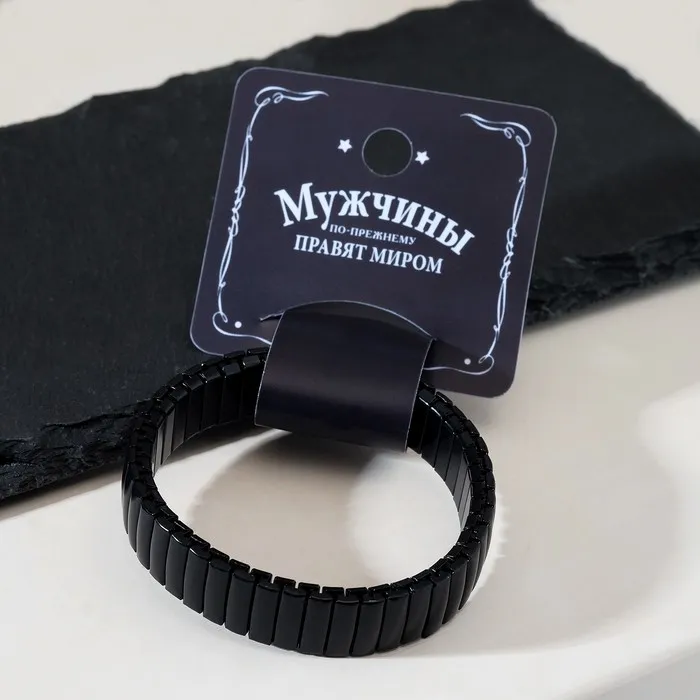 Длина 6,5 см идеально подходит для комфортного ношения на запястье, а отсутствие застёжки делает его максимально удобным и лёгким в использовании. Материал основы — высококачественная сталь, которая не только обладает эстетической привлекательностью, но и гарантирует долговечность изделия даже при ежедневной носке. Такой браслет станет отличным дополнением к деловому стилю или повседневному образу, а также прекрасным подарком на День рождения или 23 Февраля.