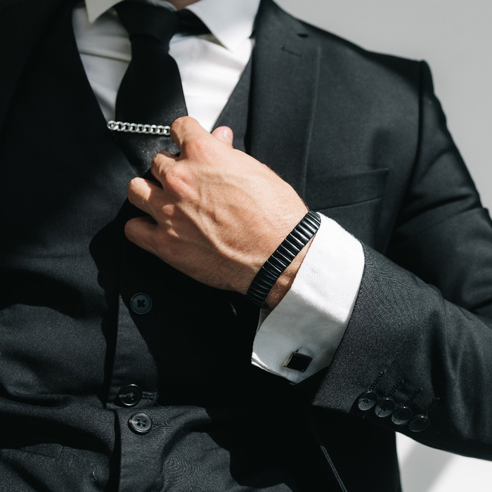 Мужской браслет «Каркас» в классическом чёрном цвете — это гармоничное сочетание строгого стиля и современного дизайна. Его конструкция из прочной стали с минималистичным звеньевым оформлением создаёт эффектный образ, подчёркивающий мужественность и индивидуальность владельца.