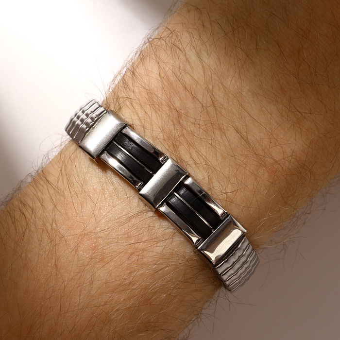 Изготовленный из высококачественной стали с текстильными вставками, этот браслет отличается долговечностью и стойкостью к повседневным нагрузкам. Его строгий дизайн отлично сочетается с деловым стилем и casual-образами, делая его универсальным аксессуаром для любого случая. Такой браслет станет отличным подарком на 23 Февраля или День рождения для взрослого мужчины, ценящего стиль и качество.