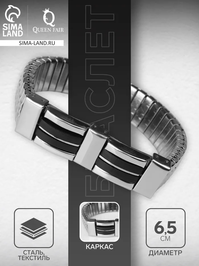 Браслет мужской «Каркас» тьма, цвет чёрный в серебре, d=6,5 см — Характеристики