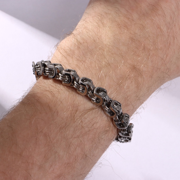 Этот металлический браслет станет отличным дополнением к мужскому стилю. Он подойдет как самостоятельное украшение, так и в сочетании с другими аксессуарами. Его универсальный дизайн позволяет носить его ежедневно или в особых случаях, подчеркивая статус и вкус владельца. Такой подарок подчеркнет ваше внимание к деталям и заботу о близком человеке.