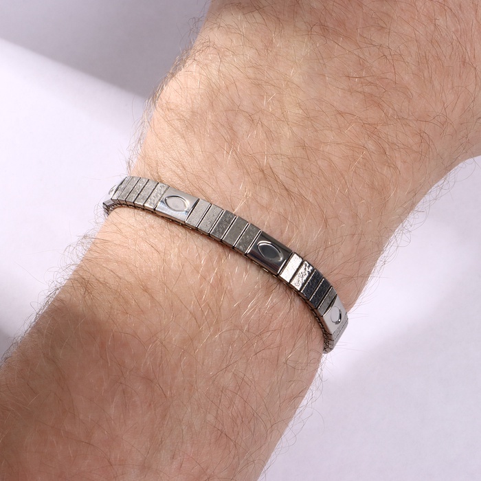 Длина 6 см обеспечивает универсальную посадку для большинства запястий, а отсутствие застёжки делает его максимально удобным в использовании. Модель из звеньев легко надевается и снимается, что делает его практичным выбором для активных мужчин, ценящих качество и эстетику. Идеально подходит для подарка на День рождения, 23 Февраля или любой другой праздник — он подчеркнет статус и вкус получателя.