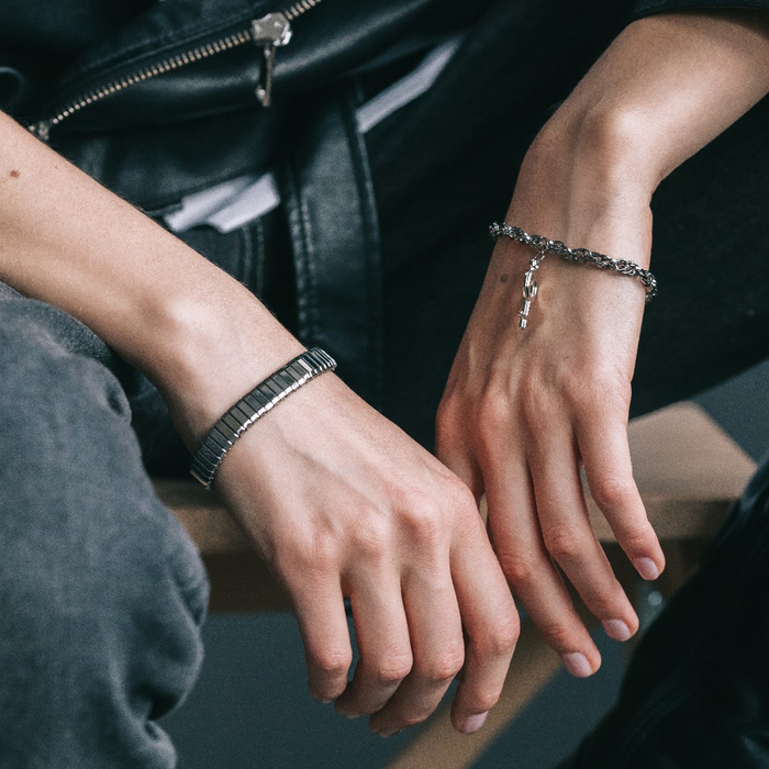 - Конструкция из звеньев создает эффектный геометрический дизайн, который легко сочетается с деловым и повседневным стилем.