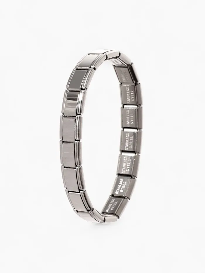 Серебристый мужской браслет из металлических звеньев воплощает сдержанную строгость и лаконичность минимализма, идеально соответствуя духу современного делового стиля. Его длина в 6 см и отсутствие застёжки создают плотную, но комфортную посадку на запястье, подчёркивая уверенность и внутреннюю силу владельца.