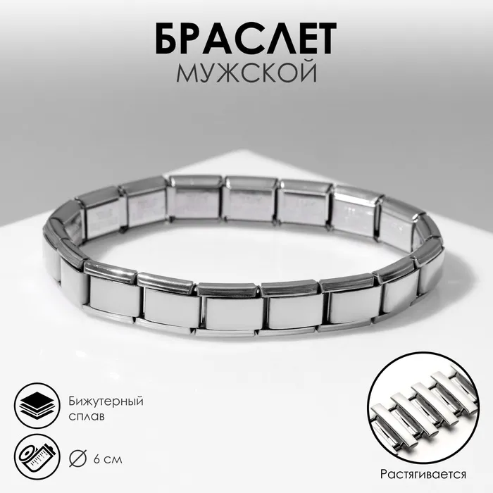 Браслет мужской «Стальной» строгость, цвет серебро — Характеристики