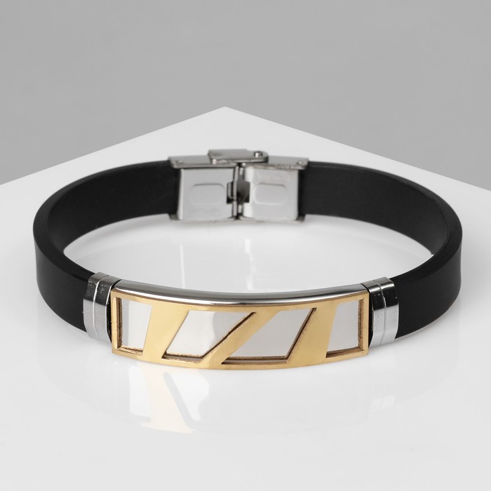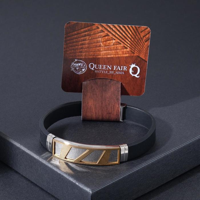 Браслет мужской «Стиль» прямоугольник резной, цвет чёрный с серебряно-золотым, 22 см — Характеристики