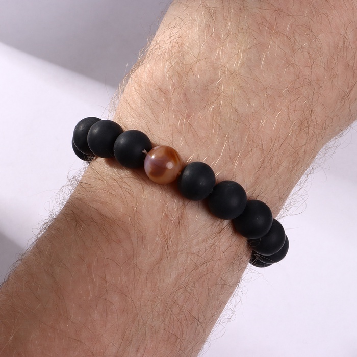 Браслет мужской «Стойкость» бусины №12, цвет коричнево-чёрный — Характеристики