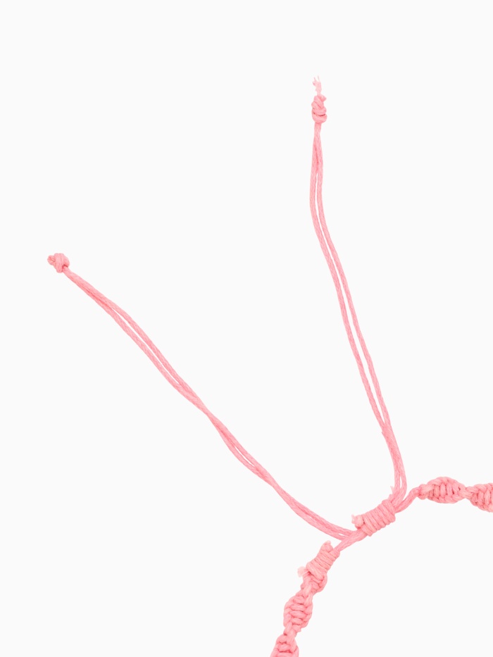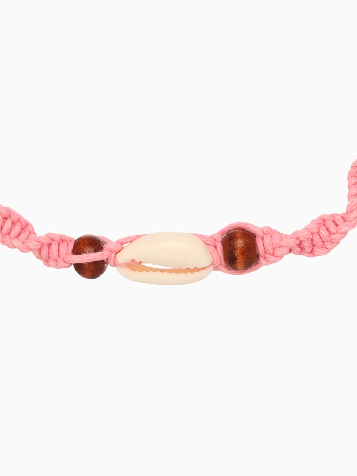Вы завязываете анклет утром — он не мешает ходить, не цепляется за ремешки обуви, но мягко напоминает: пора улыбнуться. Розовый шнур — как отблеск заката на воде, звёзды и ракушка — как сувенир из самого лёгкого дня. Можно носить один или в паре с другими — он не требует внимания, но всегда добавляет настроение.