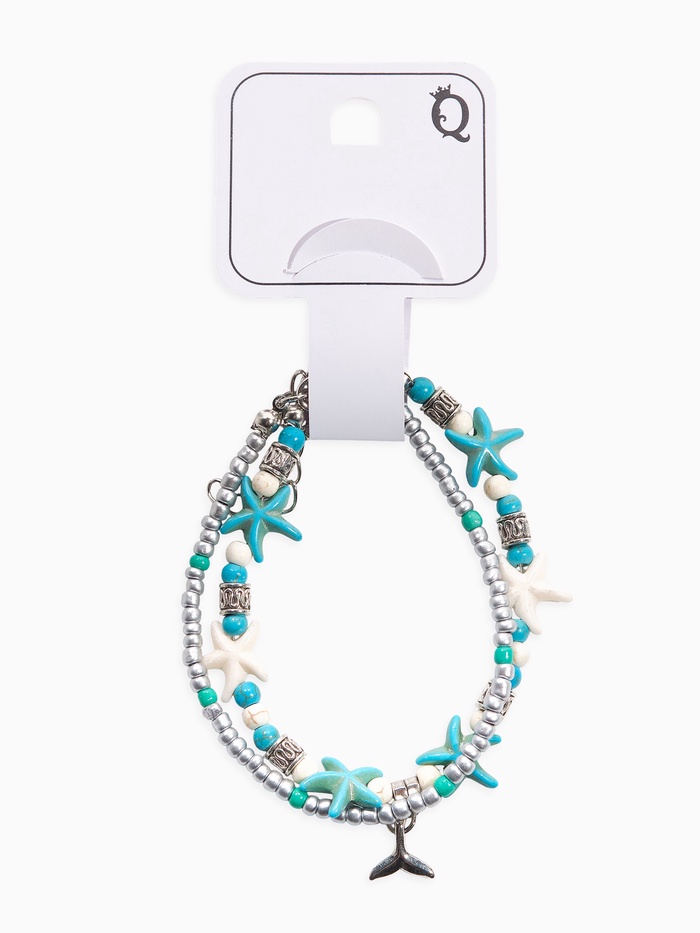 Добавьте морскую прохладу и свежесть в свой летний образ с элегантным и нежным браслетом для ног, вдохновленным бескрайними океанами и теплыми пляжами. Эффектный рисунок хвоста рыбы, выполненные в белом и голубом цветах, окаймленных тонкой серебряной отделкой, ассоциируется с морской глубиной и подводным миром, моментально привлекая восторженные взгляды.