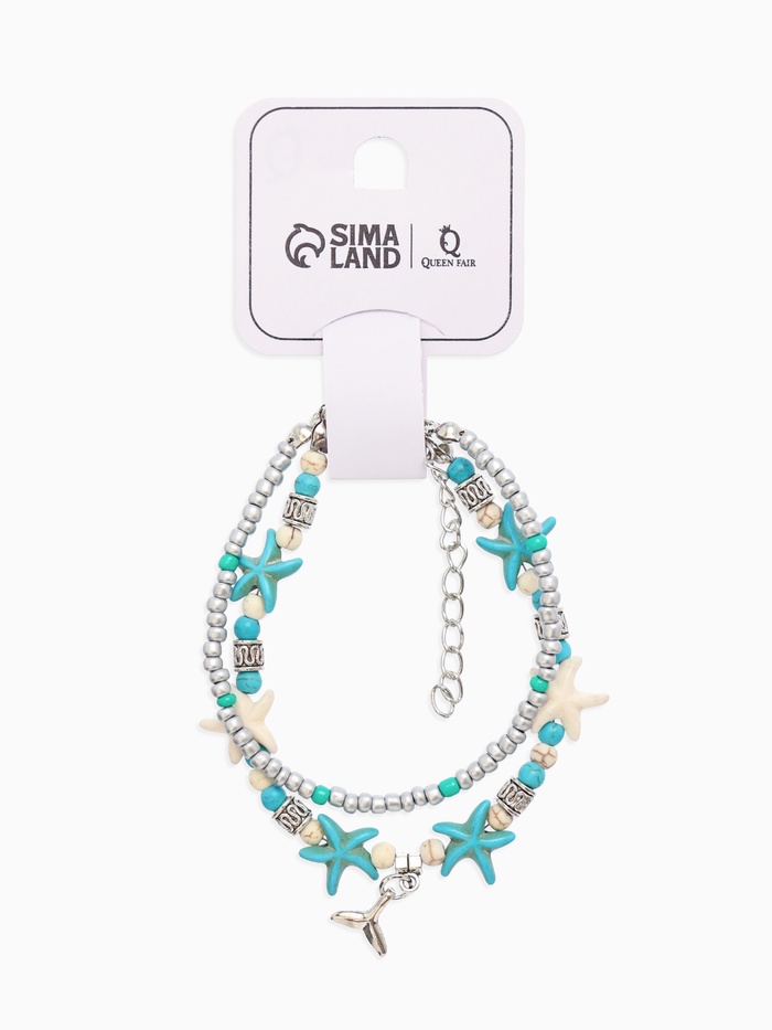 Браслет на ногу «Морской» хвостик, цвет бело-голубой в серебре, 25 см + удлинитель 5 см — Характеристики