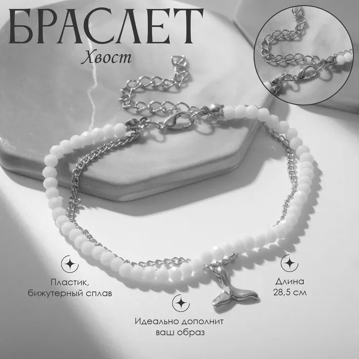 Браслет на ногу QF «Хвост» русалки, набор, белый в серебре, 28.5 см — Характеристики