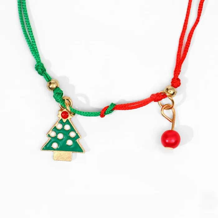 Браслет «Новогодний» ель с бусинкой, цвет красно-зелёный, 6 см — Характеристики
