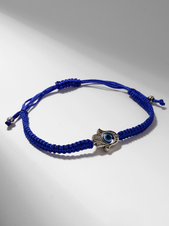 Браслет-оберег «Детский» глазик в плетении, синий в чернёном серебре, d=4 см — Характеристики