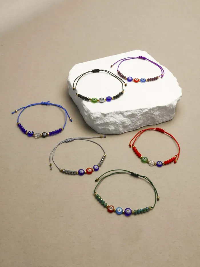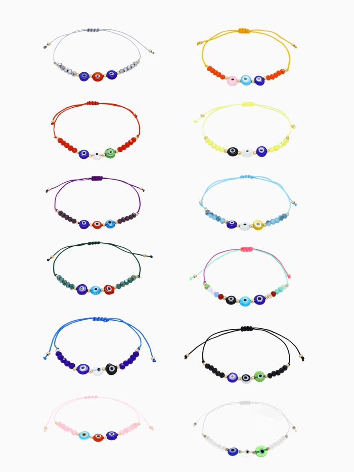 Браслет-оберег «Глазик» ассорти (неделимая фасовка 12 шт., цена за шт.), цветной в серебре — Характеристики