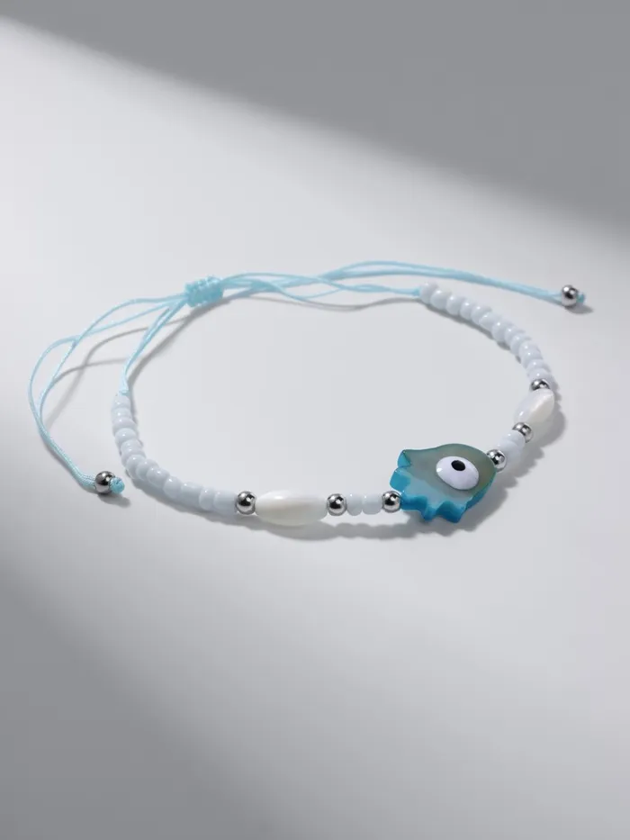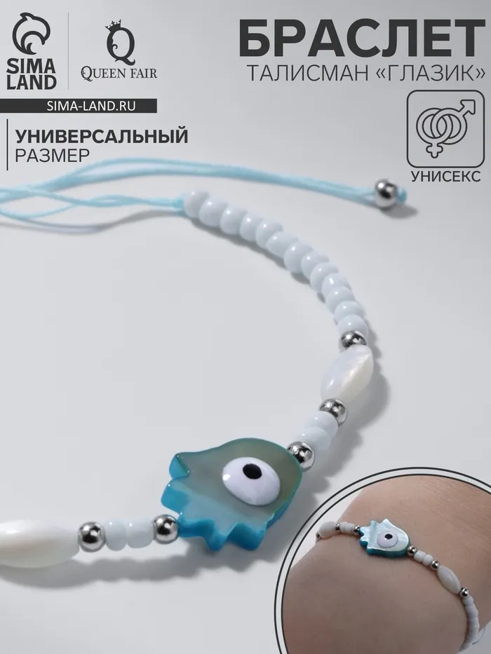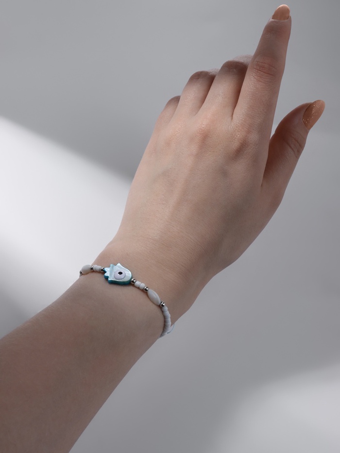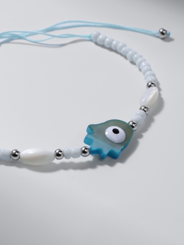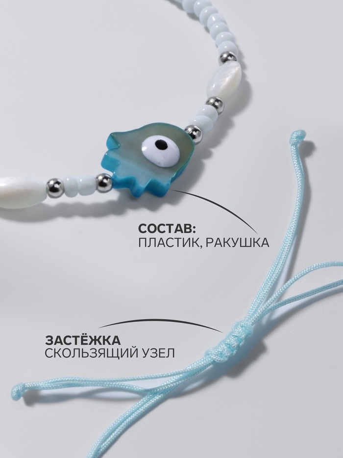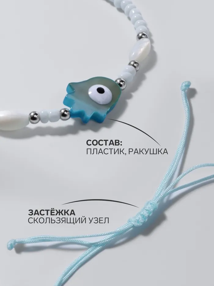Браслет-оберег «Глазик» на нити, рука счастья Хамса, голубой в серебре — Характеристики