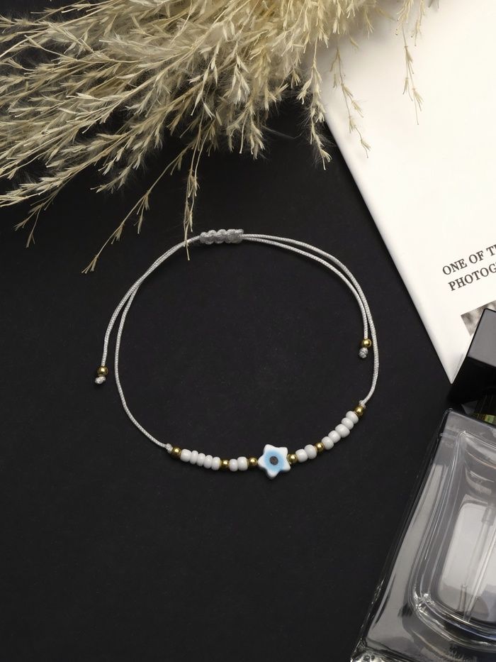 Браслет-оберег «Глазик» на нити, звезда, белый в золоте — Характеристики