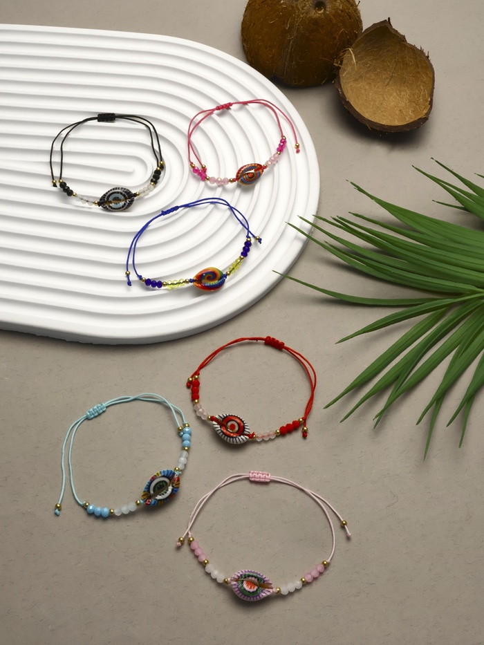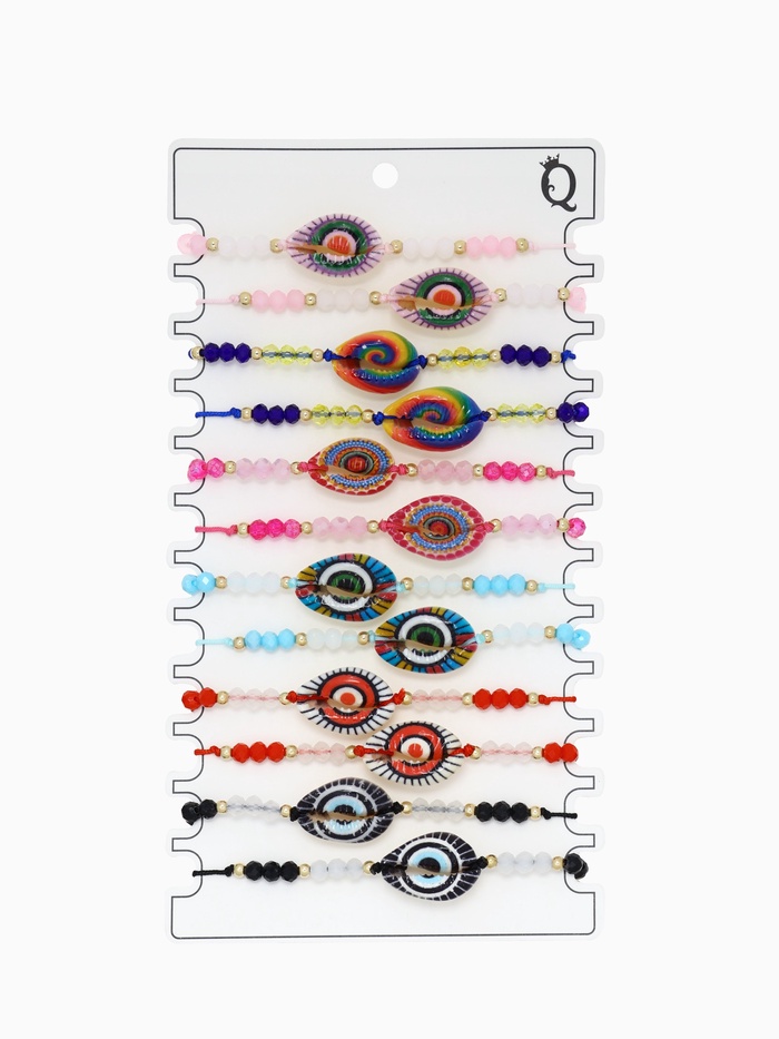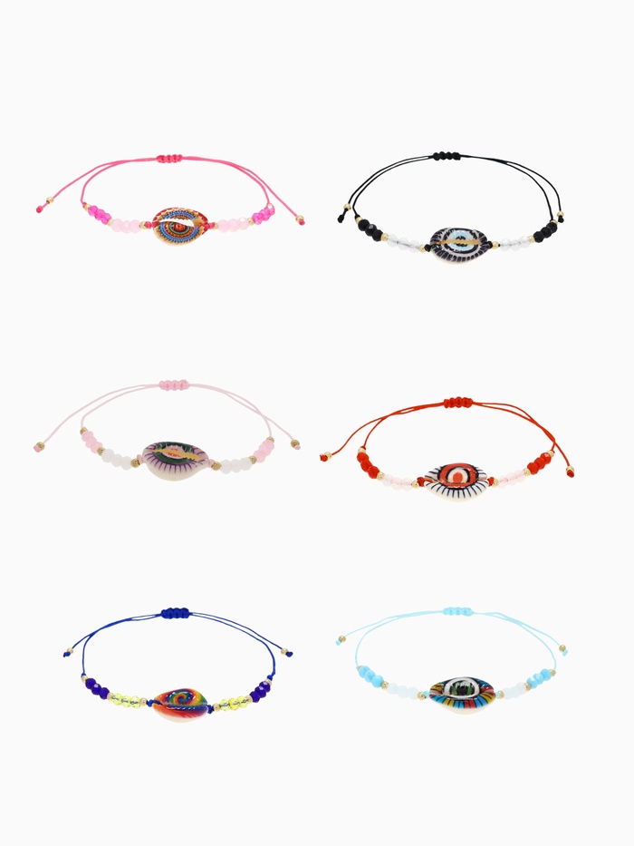 Браслет-оберег «Глазик» ракушка (неделимая фасовка 12 шт., цена за шт.), цветной в золоте — Характеристики