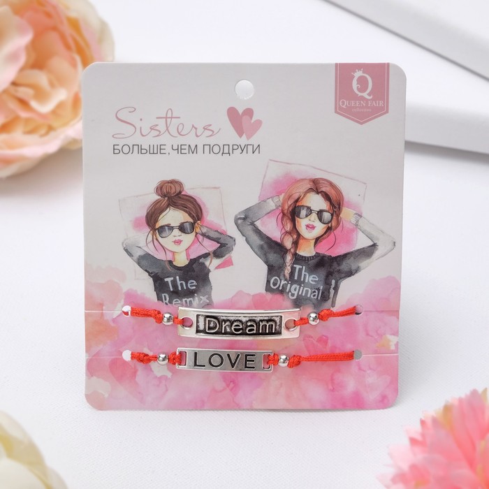 Браслет-оберег «Красная нить» Happy family сёстры, набор 2 шт., цвет серебро, d=5,5 см