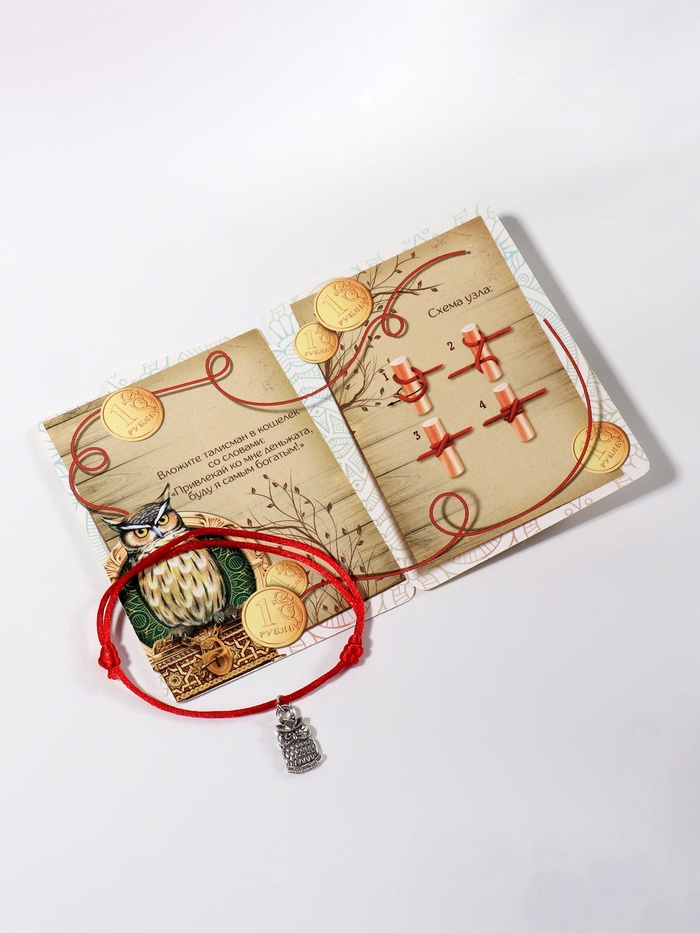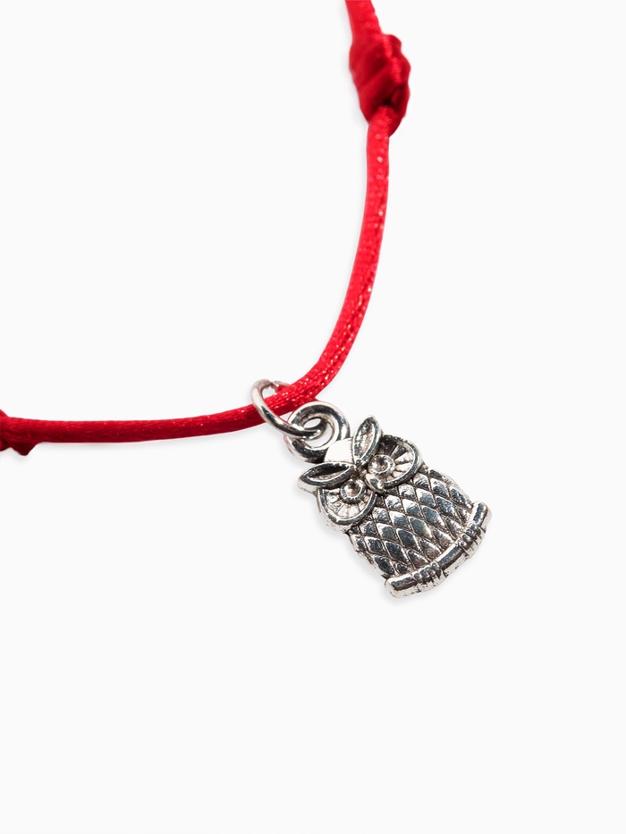 Браслет-оберег «Красная нить» с подвеской в виде совы, длиной 20 см, выполнен с элементами из чернёного серебра. Сова символизирует мудрость, знания и привлечение денег. Этот браслет станет талисманом финансового успеха и профессионального роста.