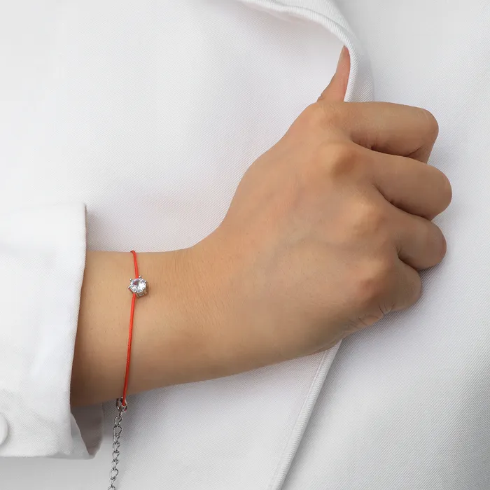 Браслет-оберег «Красная нить» многогранник, белый в серебре