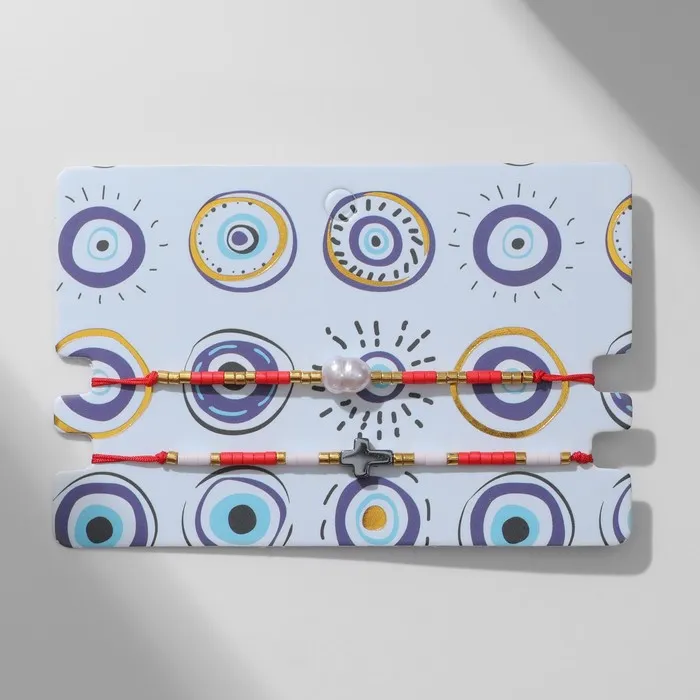 Браслет-оберег «Красная нить» набор 2 шт., бисер, чёрно-белый — Характеристики