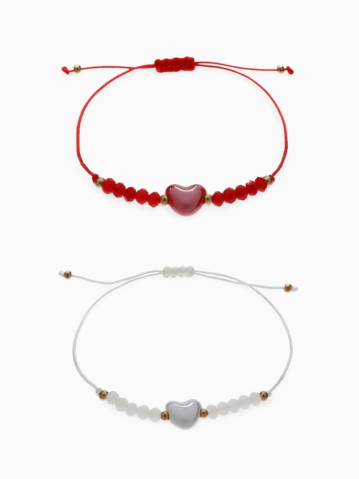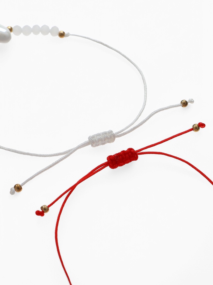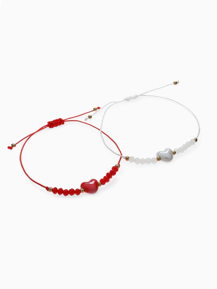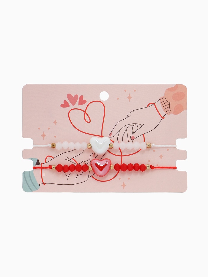 Браслет-оберег «Красная нить» набор 2 шт. сердце, красно-белый
