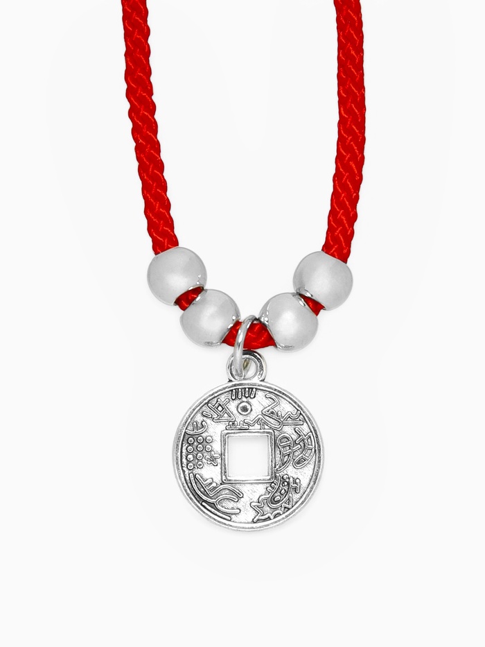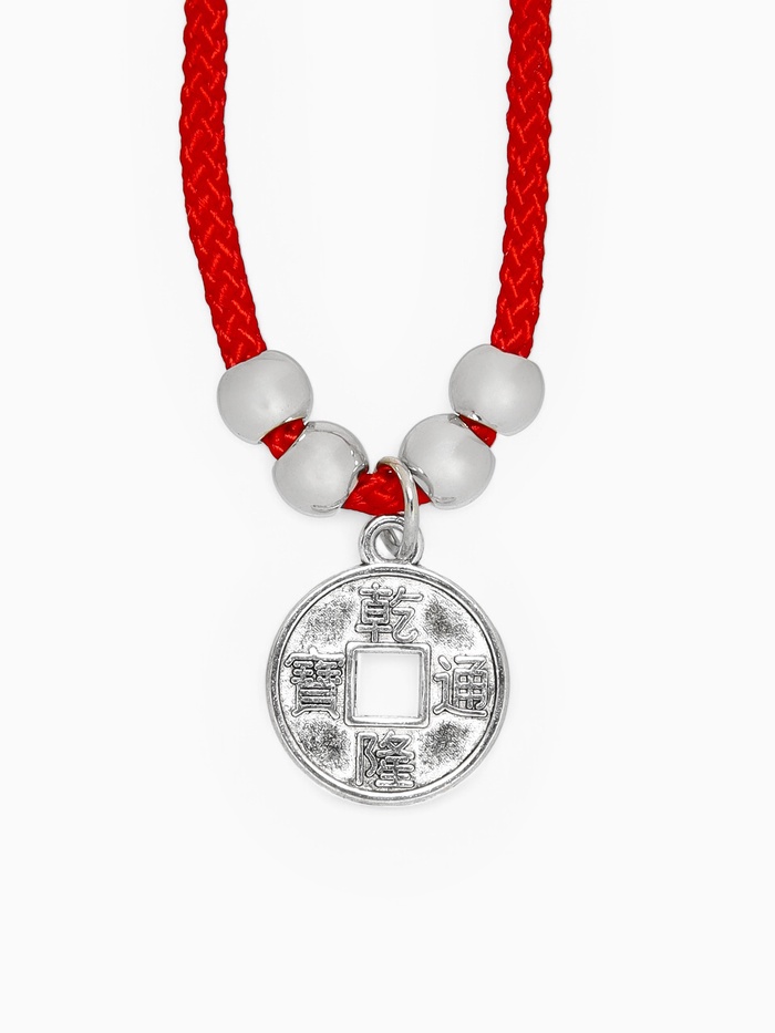 Браслет-оберег «Красная нить» одна монета, цвет чернёное серебро, 20 см — Характеристики