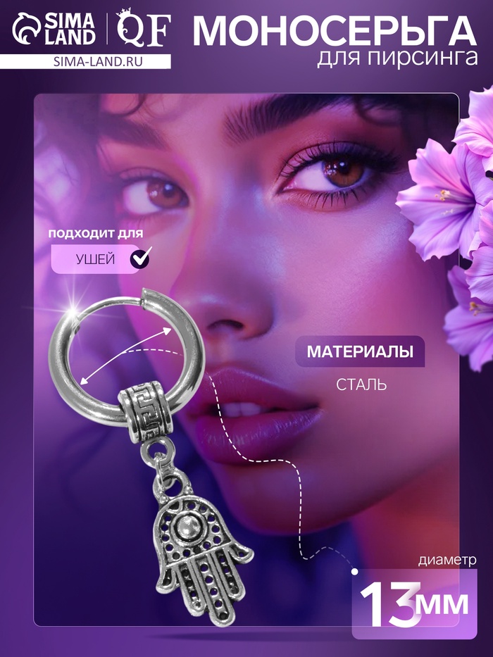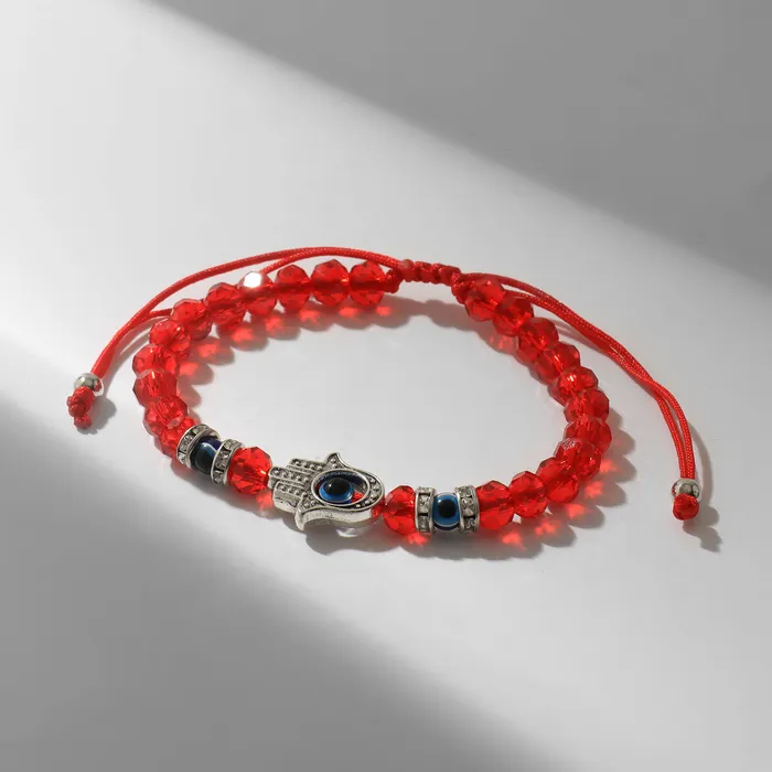 Браслет-оберег «Красная нить» рука счастья Хамса, хрусталики, синий в чернёном серебре, d=8 см — Характеристики