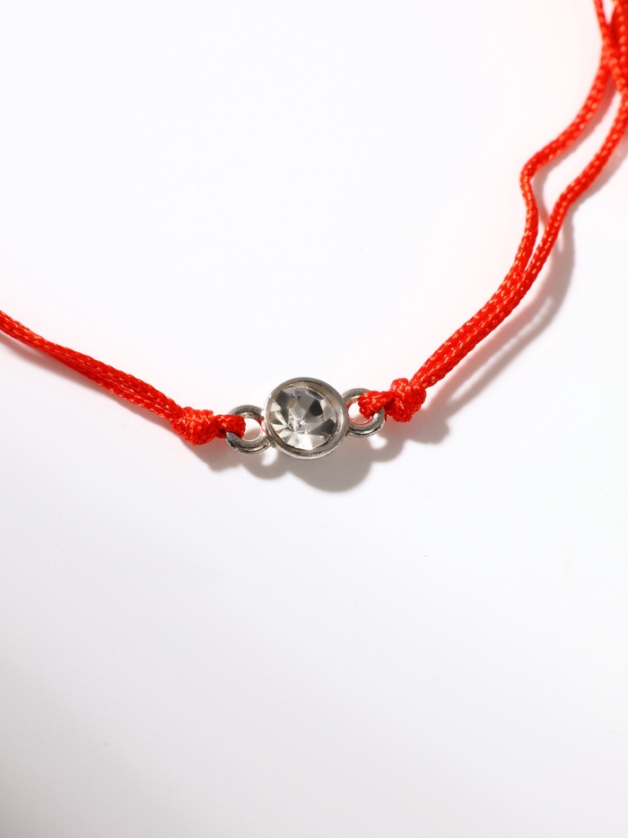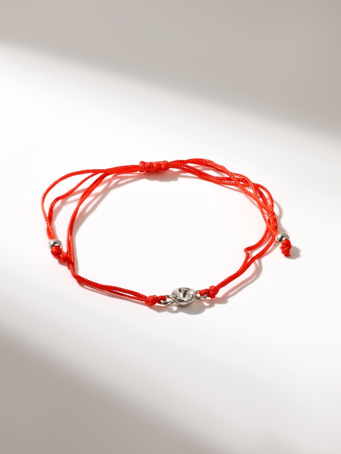 Браслет-оберег «Красная нить» рука счастья Хамса с кристаллом, белый в серебре, d=5.5 см — Характеристики