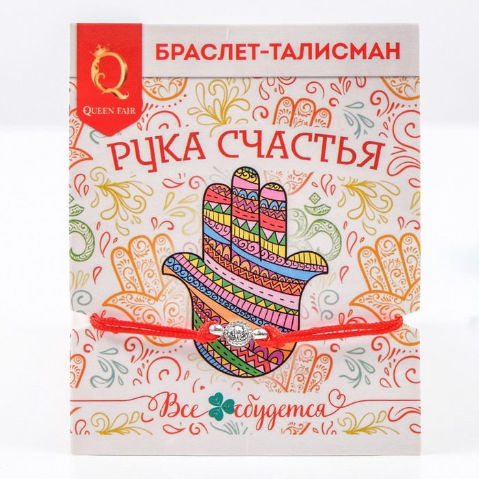 Браслет-оберег «Красная нить» рука счастья Хамса с кристаллом, цвет белый в серебре, d=5,5 см — Характеристики