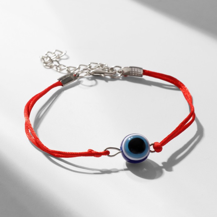 Браслет-оберег «Красная нить» талисман защиты, бусинка с глазиком, цвет синий с серебром, 18 см — Характеристики