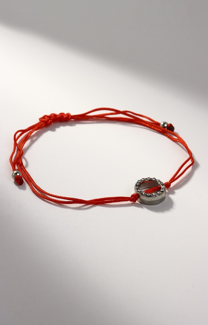 Браслет-оберег «Красная нить» Your daily life круг со стразами, белый в серебре, 7 см — Характеристики