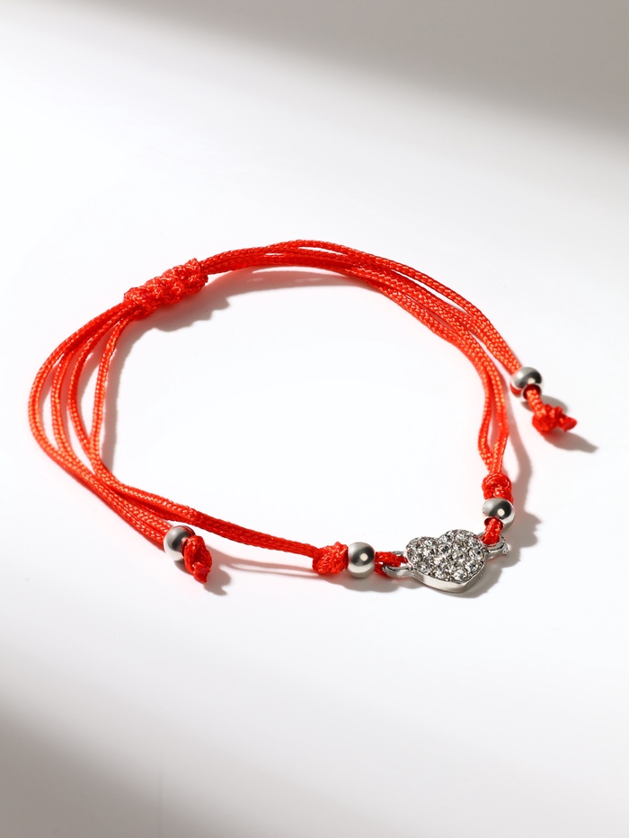 Браслет-оберег «Красная нить» Your daily life сердечко, белый в серебре, 7 см — Характеристики