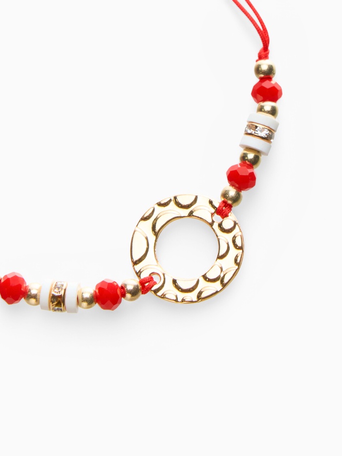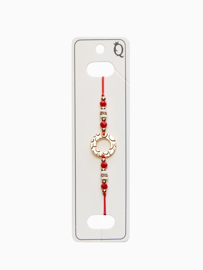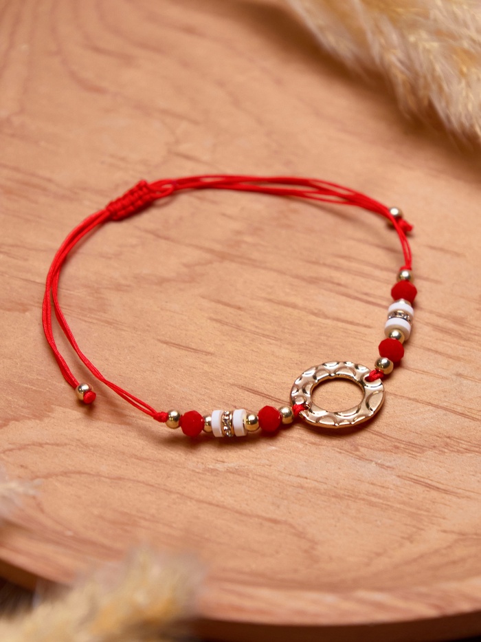 Погрузитесь в мир стиля и защиты с удивительным браслетом, который станет вашим личным оберегом. Этот аксессуар с красной нитью и бело-красным кольцом в золотой отделке не только привносит яркие акценты в ваш образ, но и символизирует защиту от негативных энергий, наполняя вашу жизнь положительными эмоциями.