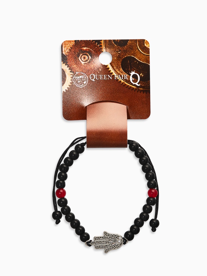 Браслет-оберег «Рука счастья Хамса» гранд, красно-чёрный с серебром, d=6 см — Характеристики