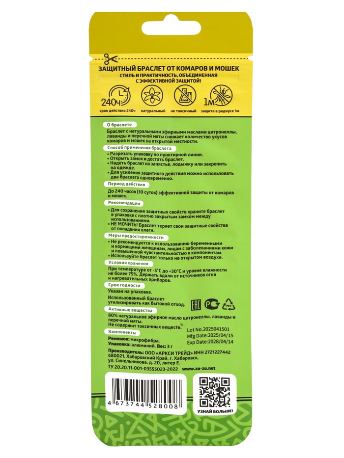 Браслет от комаров и мошек Zu-Zu.net — Характеристики