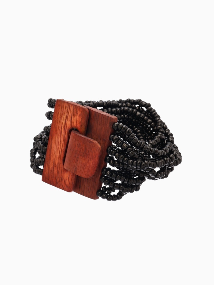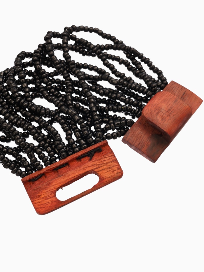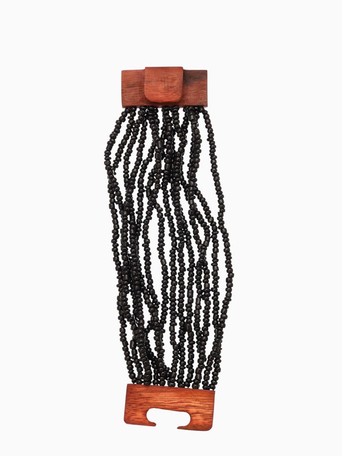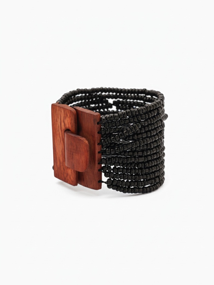 Ощутите уникальную энергию и мудрость традиций прошлого с необычным плетеным браслетом, покрытым таинственным черным цветом. Оригинальный дизайн, напоминающий древние узоры племен, формирует настоящую манжету шириной 5 см и длиной 20 см, создающую интересный контраст с современными городскими нарядами.