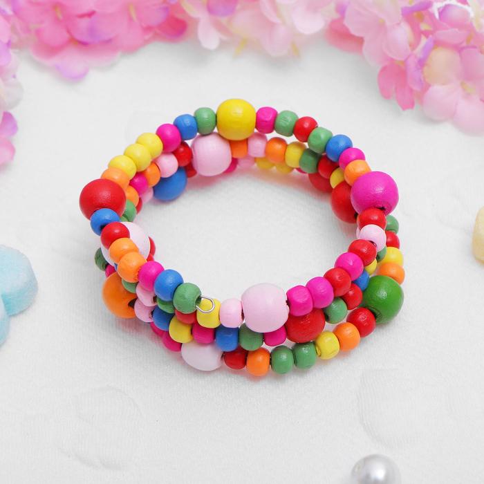 Браслет-пружинка детский «Выбражулька» бусинки, три ряда, цветной — Характеристики