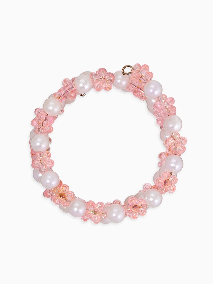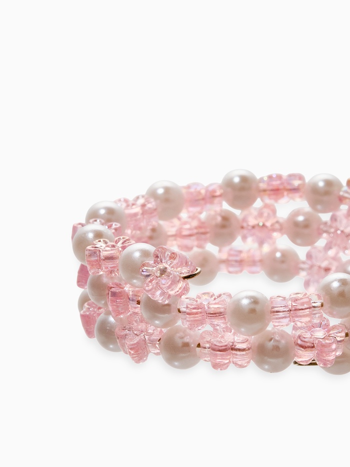 Браслет пружинка детский «Выбражулька. Цветочки хрустальные», бело-розовый