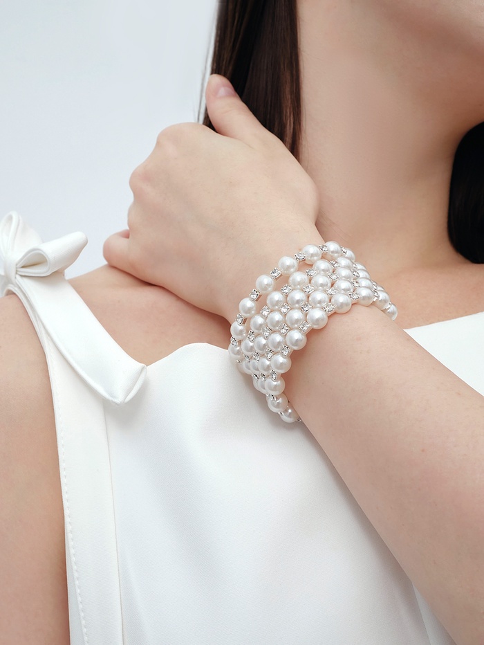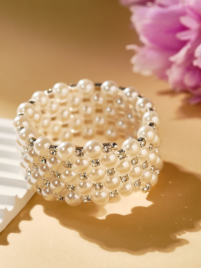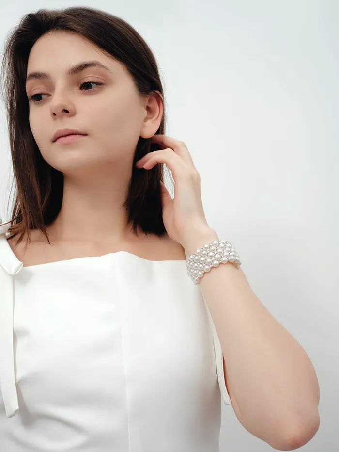 Браслет-пружинка «Жемчужинка» 5 рядов, шахматы, цвет белый, 6 см — Характеристики