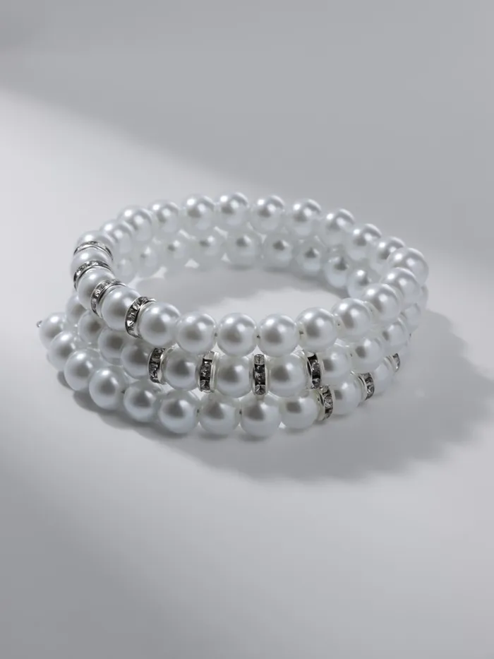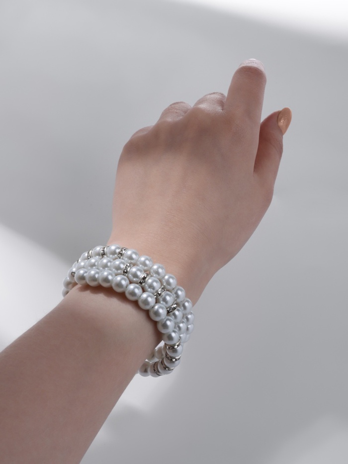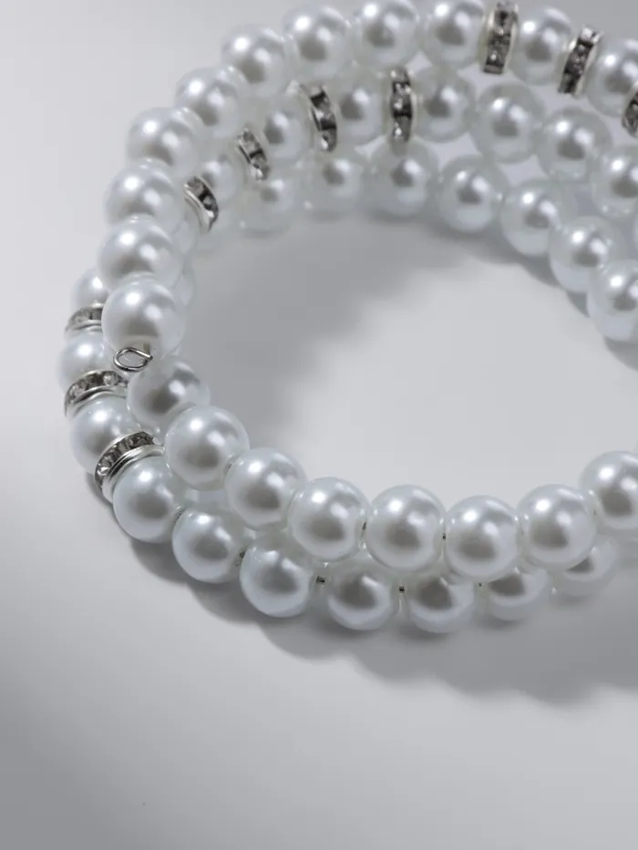 - Шикарный стиль: три ряда жемчуга и страз придают аксессуару необычайную выразительность, позволяя вам выделяться в любом окружении.