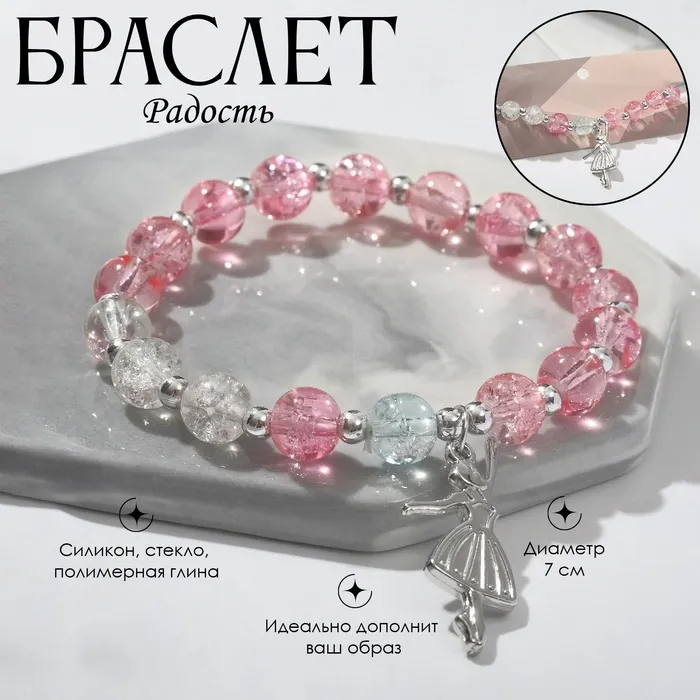 Браслет «Радость» балерина, цвет бело-розовый в серебре, d=7 — Характеристики
