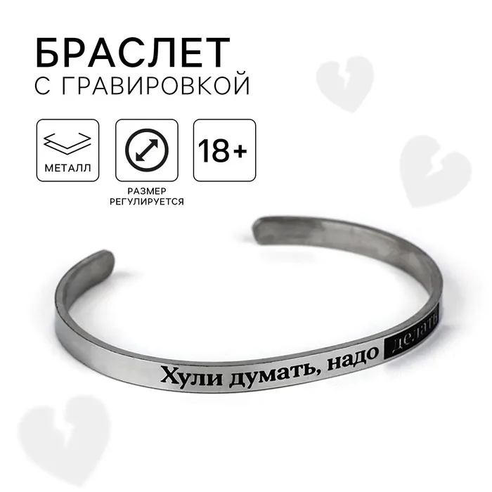 Браслет с гравировкой «Надо делать», 6.7 см, 18+ — Характеристики