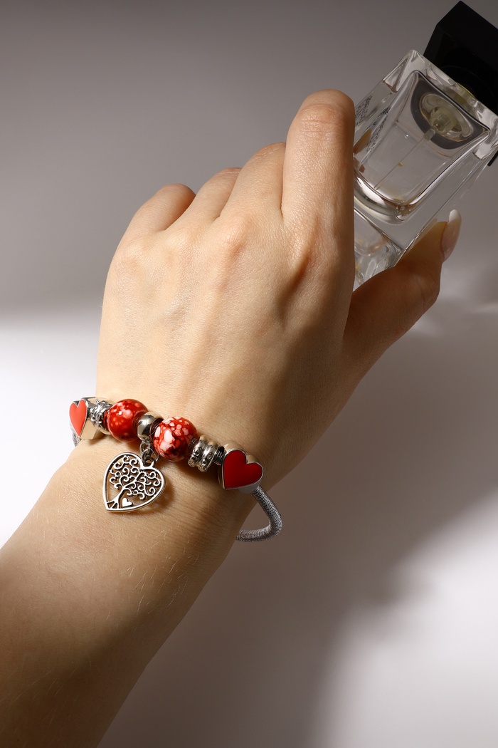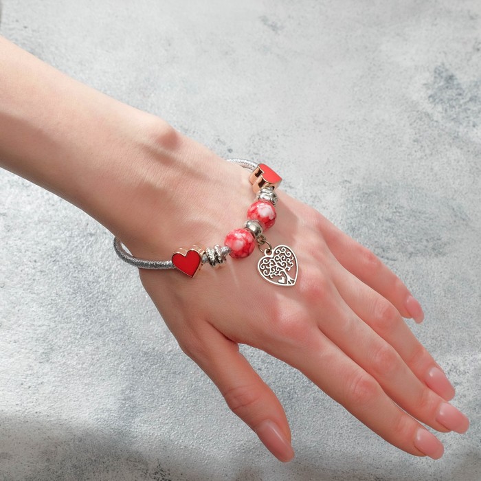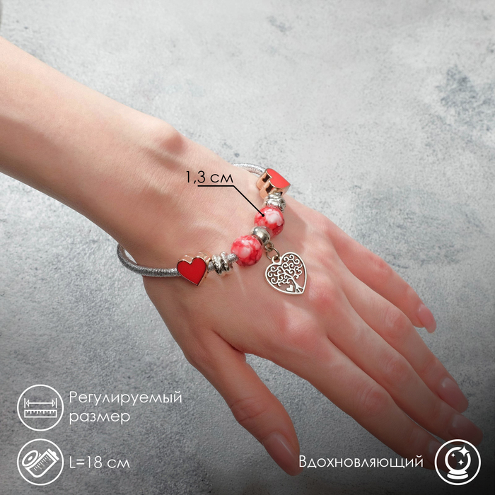 Браслет с шармами «Марджери» на нити, дерево в сердце, L=18 см, красный в серебре — Характеристики