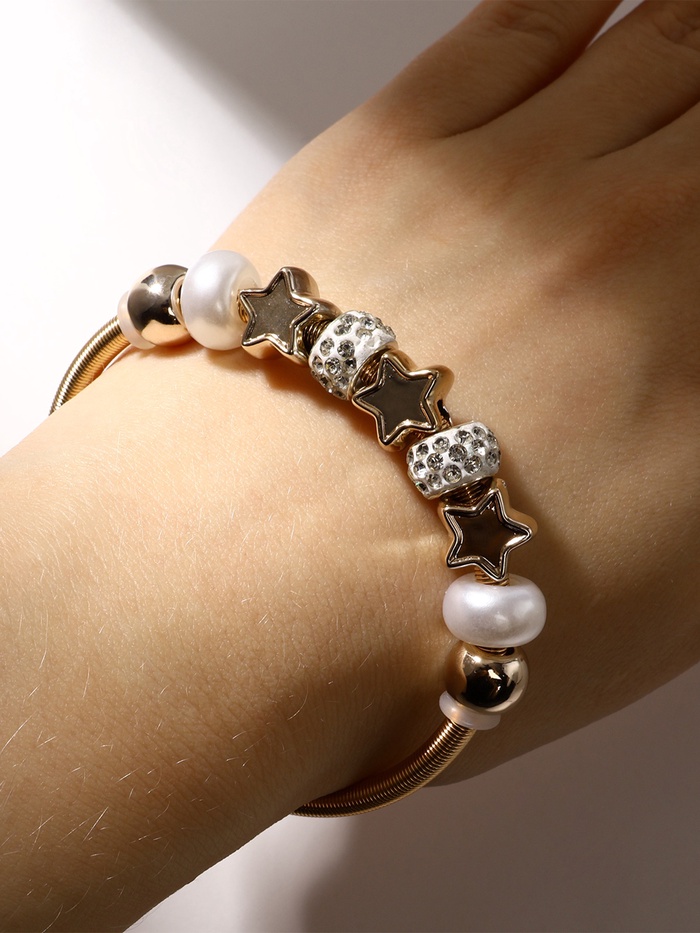 Браслет с шармами «Марджери», жемчуг, звёзды, белый в золоте, d=6.5 см — Характеристики