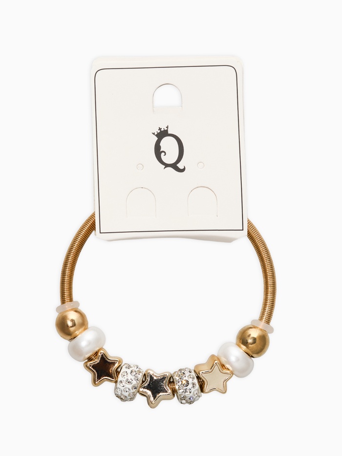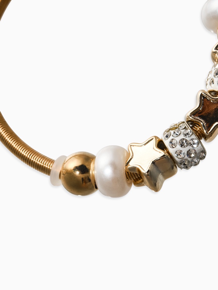 Браслет с шармами «Марджери», жемчуг, звёзды, белый в золоте, d=6.5 см